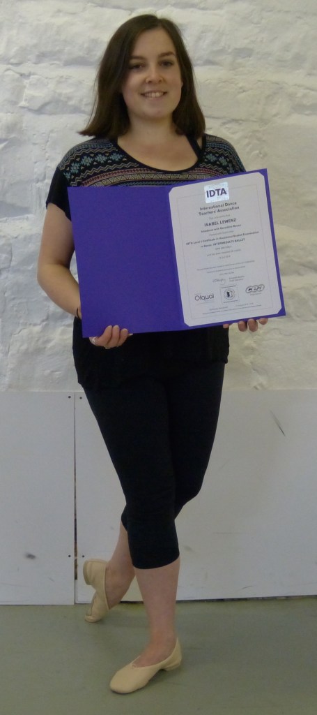 IDTA trained Miss Izzy has completed her Level 4 Teaching Diploma with Intadance gaining a Distinction further to passing her Pre Associate 1 and 2.